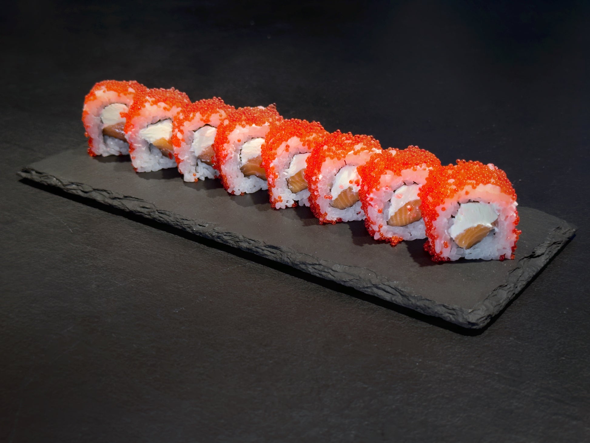 Riz, fromage, saumon, tobiko, nori